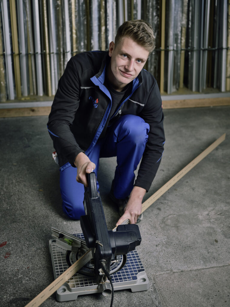 „Ich habe einen besonders abwechslungsreichen Job hier bei der MIBAG. Ich hab’ zwei Berufe gelernt, bin sowohl Bodenleger als auch Maurer und habe hier die Möglichkeit, all meine Fähigkeiten zu entfalten. Das könnte ich in einer normalen Firma nicht. Ich kann gar nicht sagen, was mir speziell an meiner Arbeit gefällt: Ich mag einfach alles hier, weil es so viel spannender ist als bei meinen alten Arbeitgebern.“